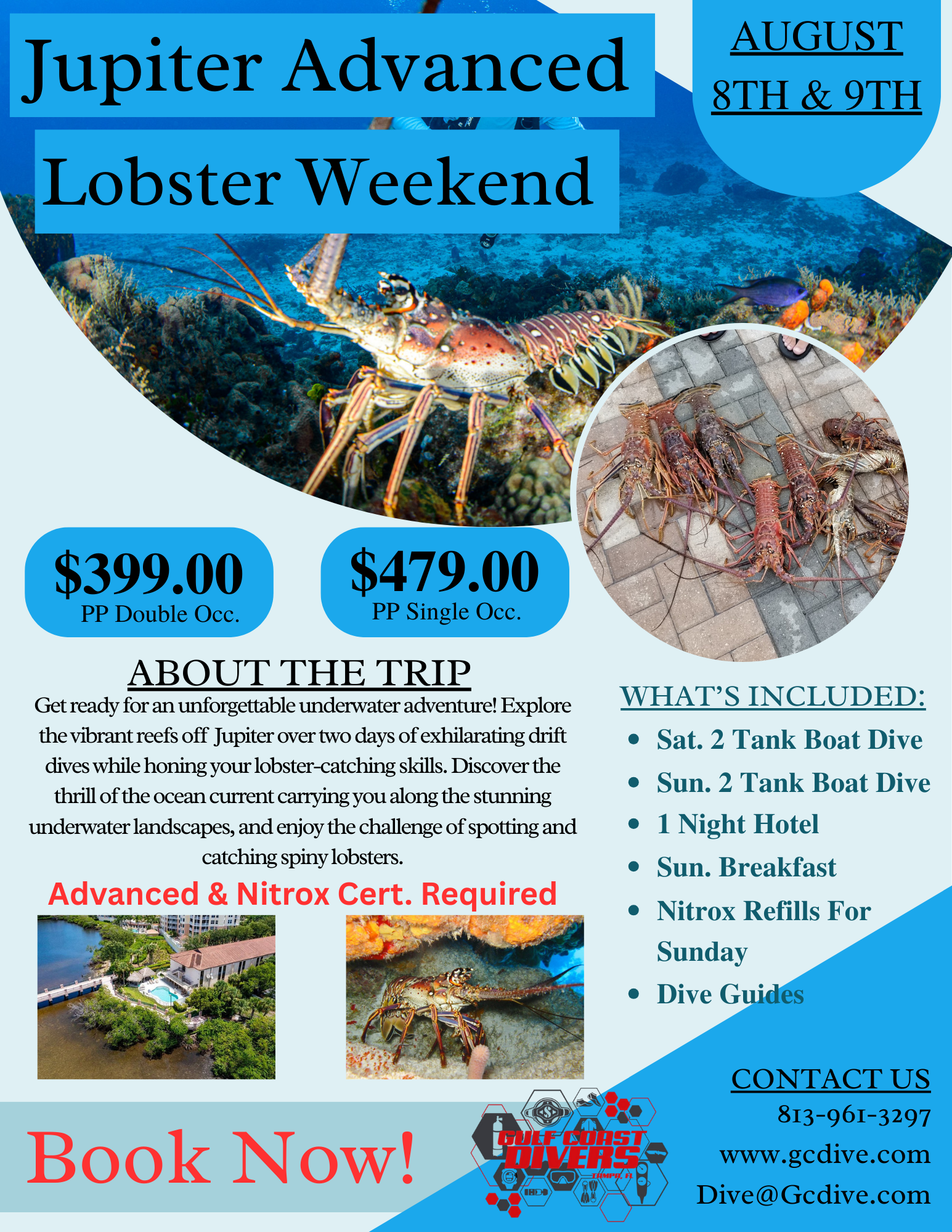 Join us for an unforgettable weekend of advanced reef diving and Florida spiny lobster hunting in Jupiter, Florida. Known for its dynamic currents and deeper reef systems, Jupiter offers some of the best drift diving for lobsters in South Florida.