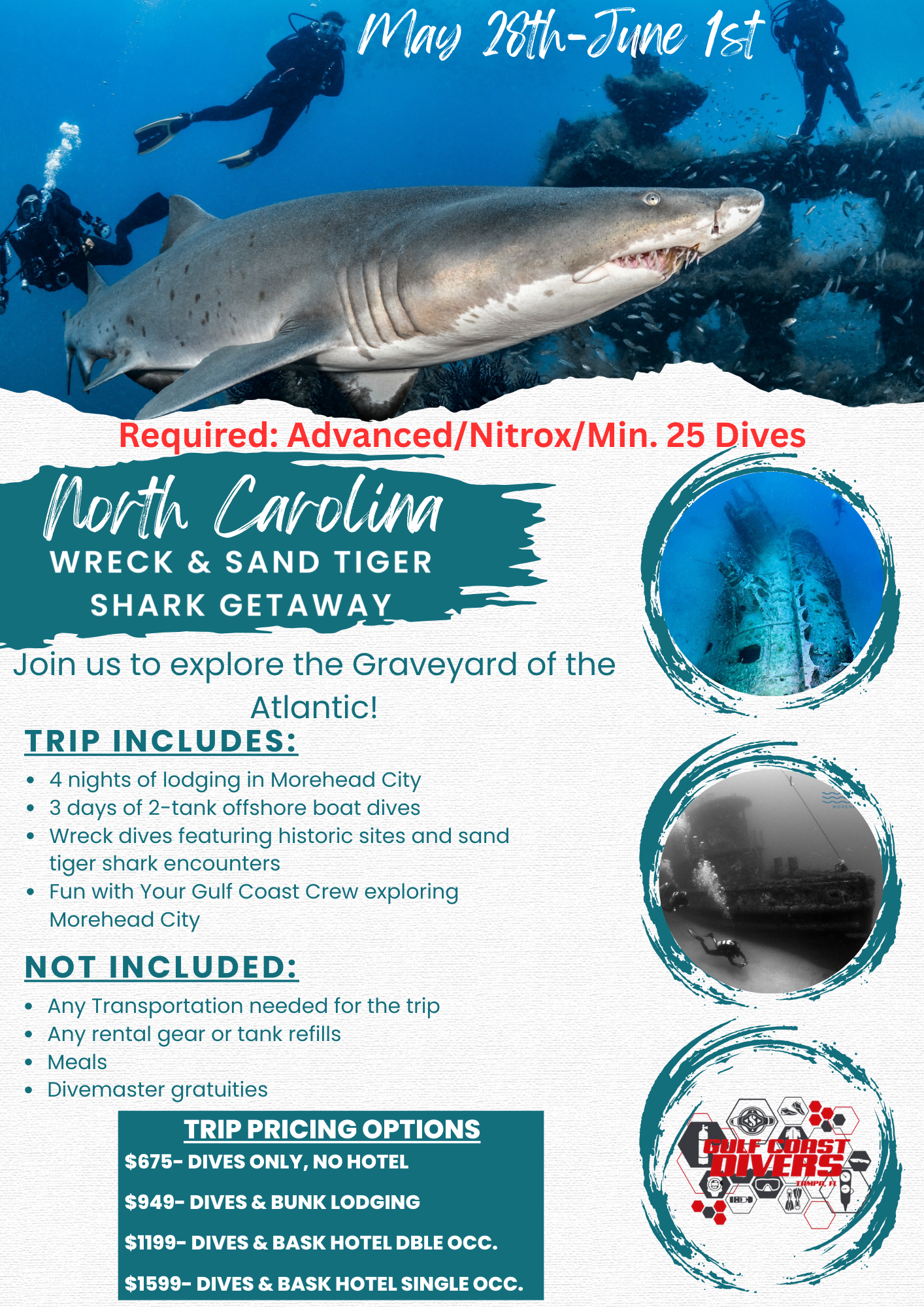If you love wrecks, sharks, and world-class diving, this is a trip you won’t want to miss. Let’s dive into history and adventure together!